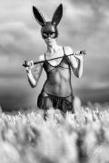 Bunny Mask. Corona pandemic style photoshooting with a 70-200 lens and a bunny masked model. Fetish outdoor picture somewhere in the middle of germany.